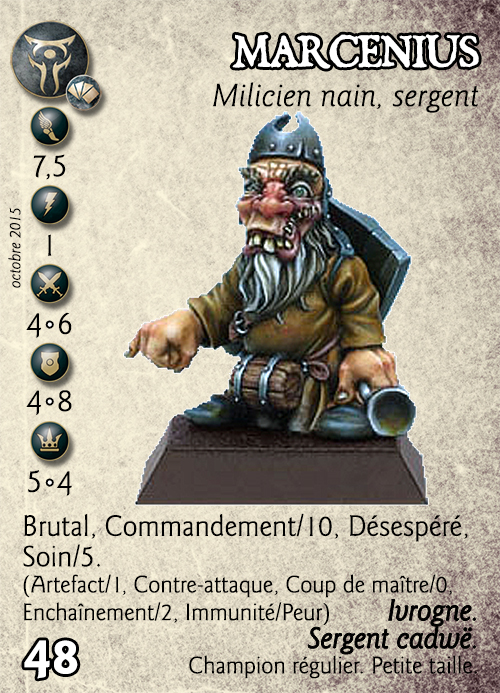 Tous les miliciens nains dans l’aura de commandement de Marcenius bénéficient de la compétence « Désespéré ».