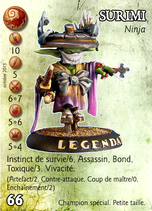 Compétences : Instinct de survie/6, Assassin, Bond, Toxique/3, Vivacité. (Artefact/2, Contre-attaque, Coup de maître/0, Enchaînement/2)
